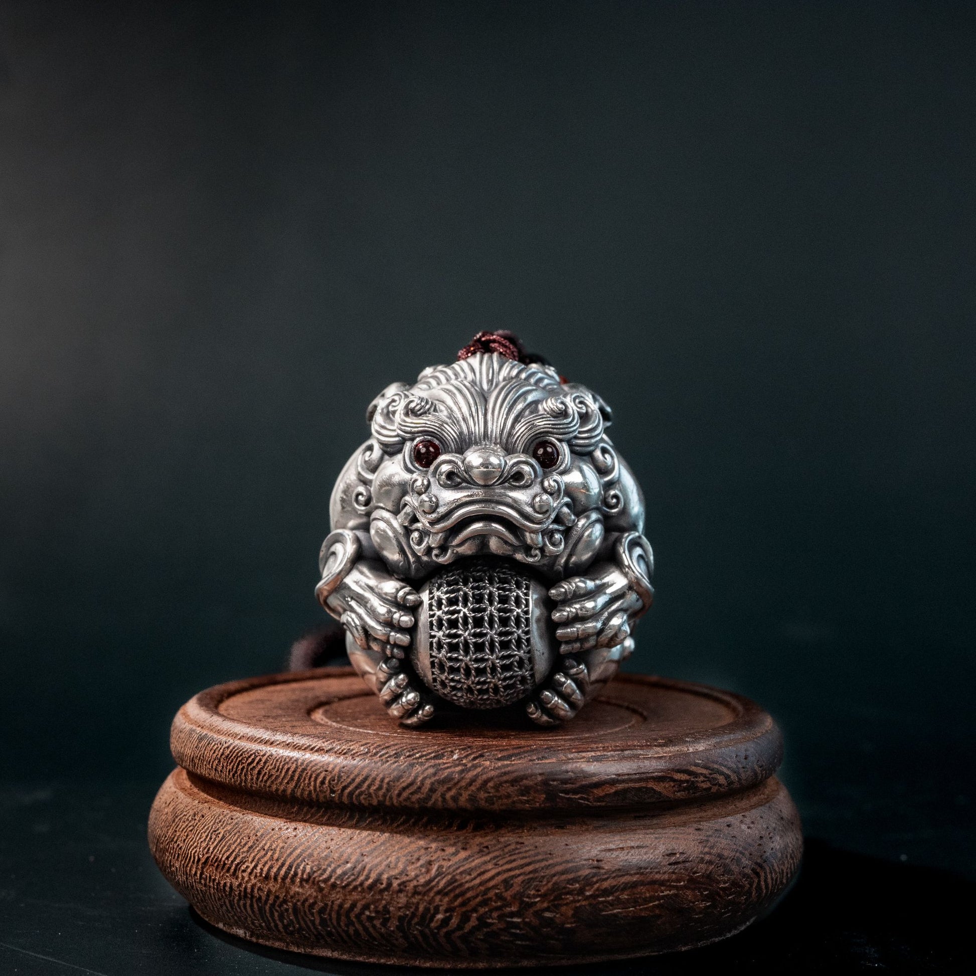 Auspicious Pi Xiu Holding a Ball, Rich Implications of Attracting Wealth & ProtectionThe pendant features the core motif of Pi Xiu holding a ball. Pi Xiu is a traditional Chinese mythical beast revered for attracting wealth. The image of "holding a ball" is a homophone for "fulfilling wishes" in Chinese culture, symbolizing the gathering of wealth from all directions and the fulfillment of all desires. Meanwhile, Pi Xiu is believed to protect its owner from negative energy and guard for peace and smoothness. Combining this auspicious symbol with silver craftsmanship, the pendant becomes a portable talisman for wealth attraction and protection.