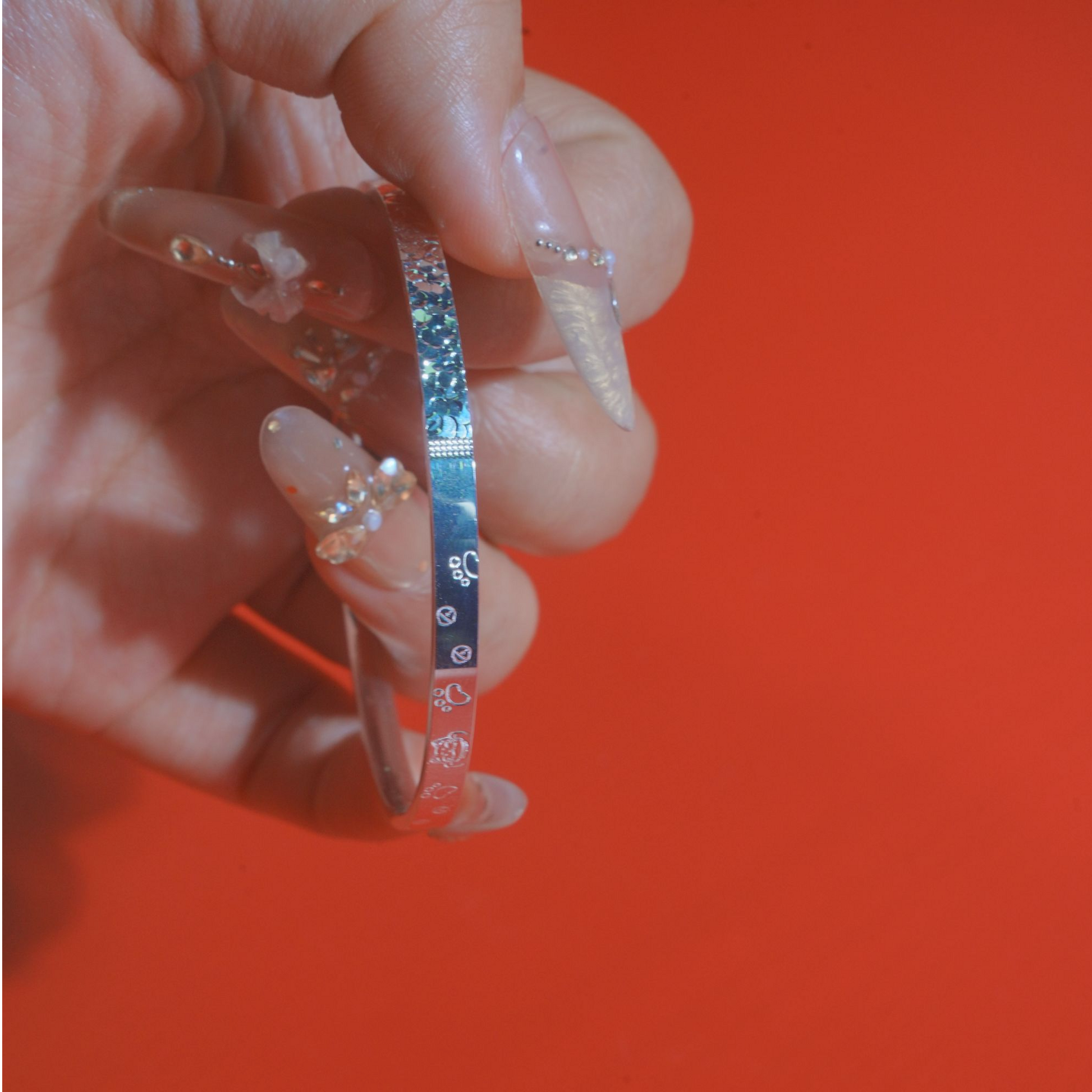 Solid Sterling Silver Craftsmanship, Crystal Ice Texture for Vivid EleganceMade of high-quality pure silver, this bangle features a solid structure that ensures substantial texture and long-lasting wear without easy deformation. The surface is polished with special craftsmanship to present a clear, translucent luster like crystal ice. Combined with a minimalist smooth design, it exudes a cool and sweet temperament with understated luxury, highlighting delicate girly charm when worn.