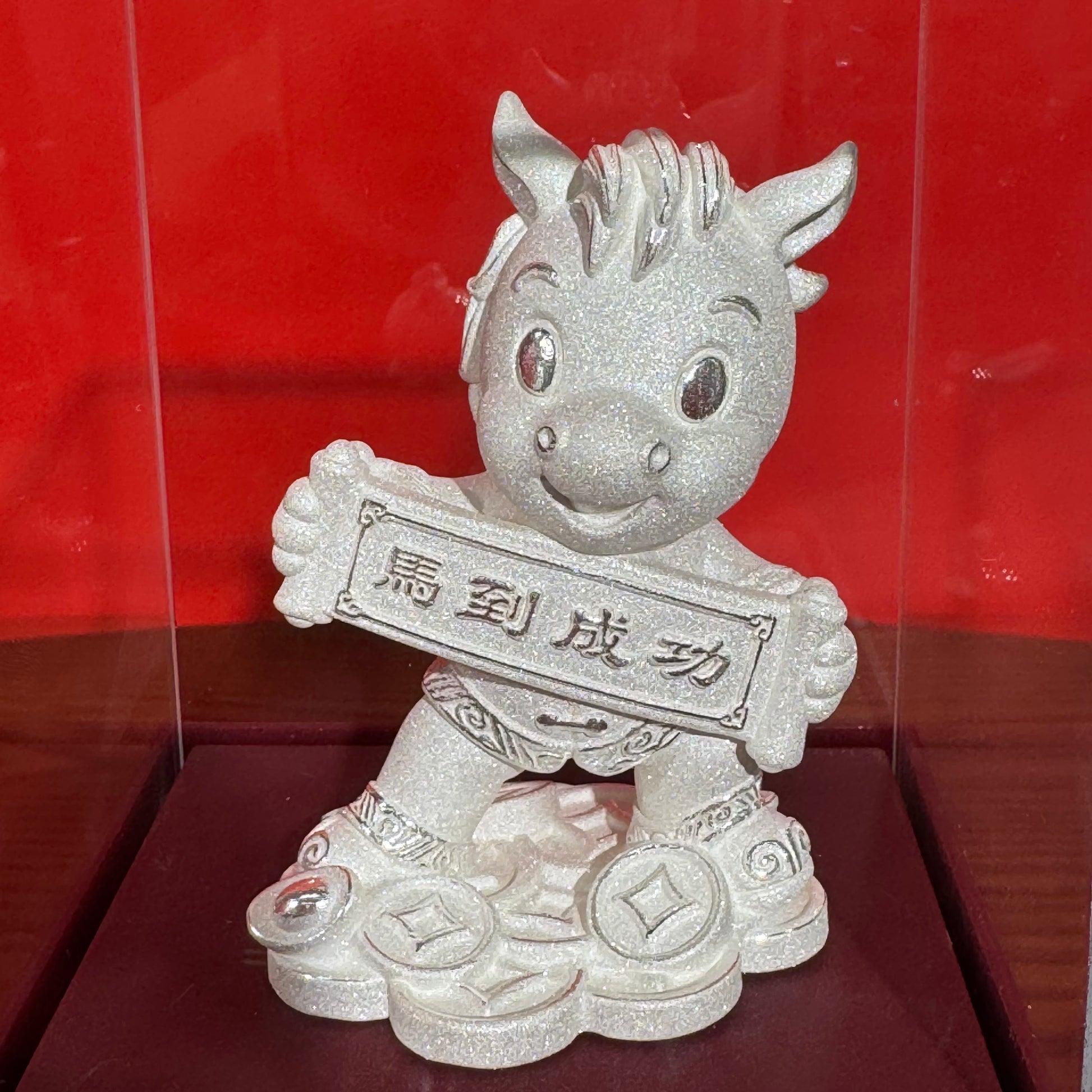 Investment-grade sterling silver horse ornament symbolizes instant success, making it a prestigious and valuable gift for grand openings and birthdays.