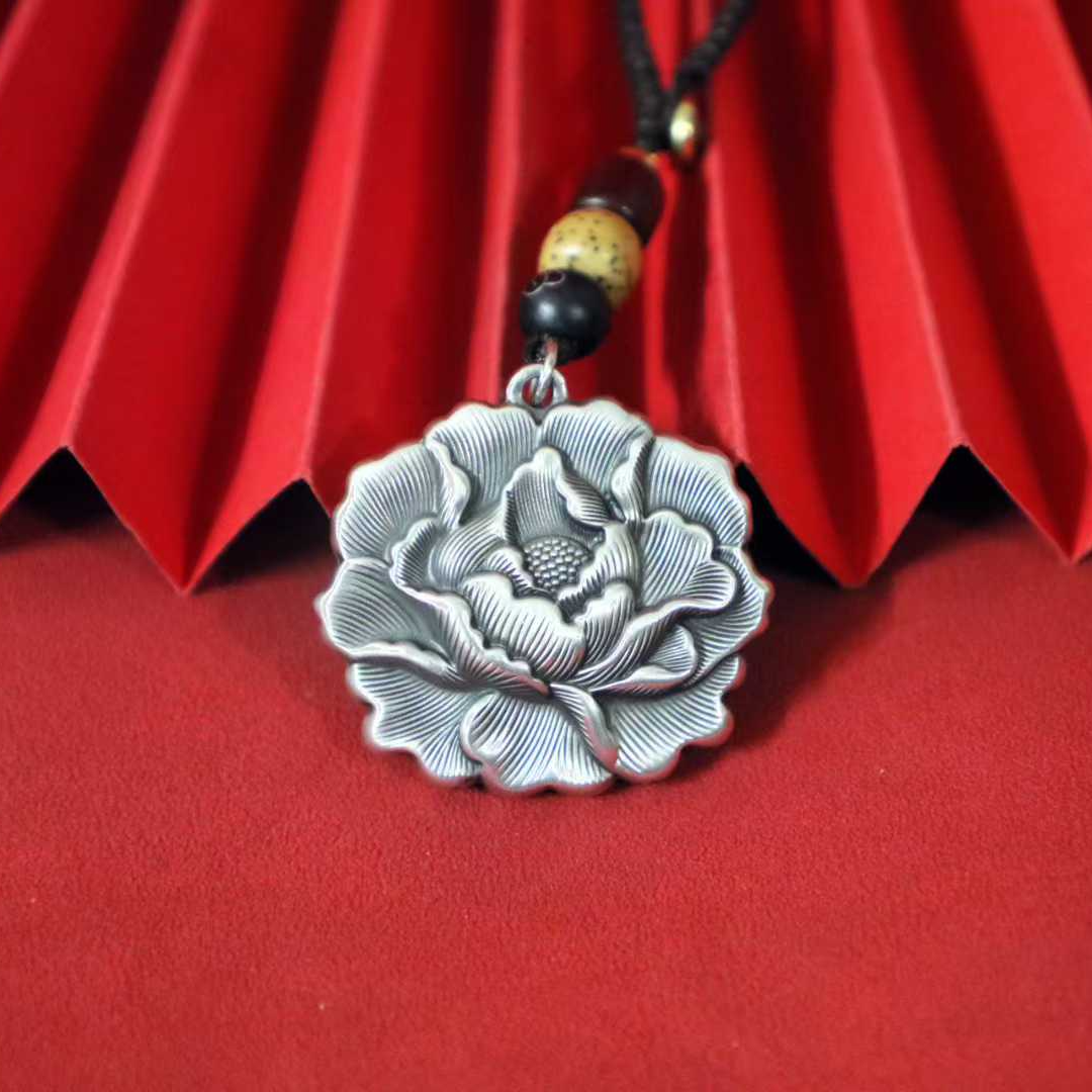 Retro Peony Solid Silver Pendant – Wear the Elegance of China’s "National Flower" as a Romantic Chinese-Style Accessory | POD Customizable