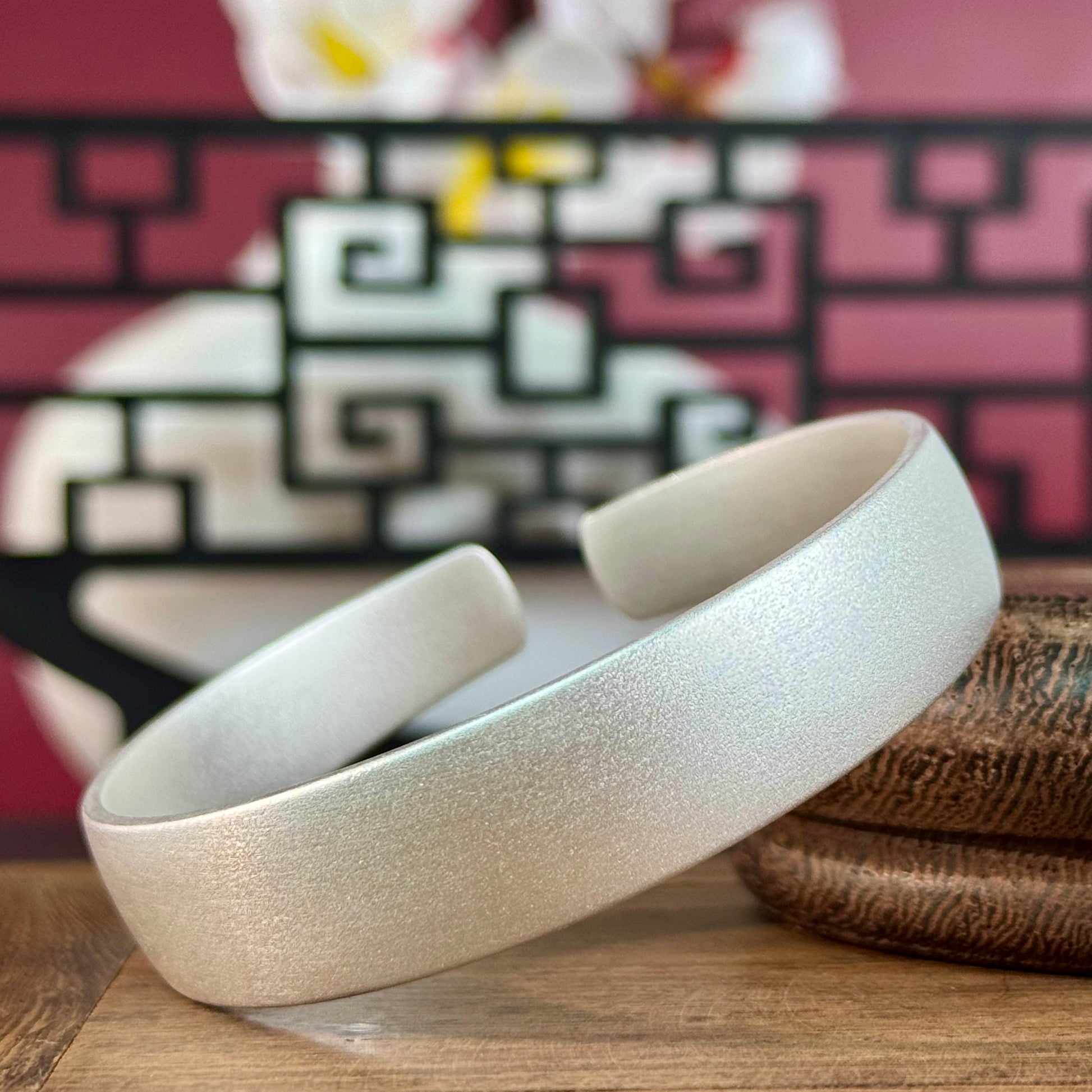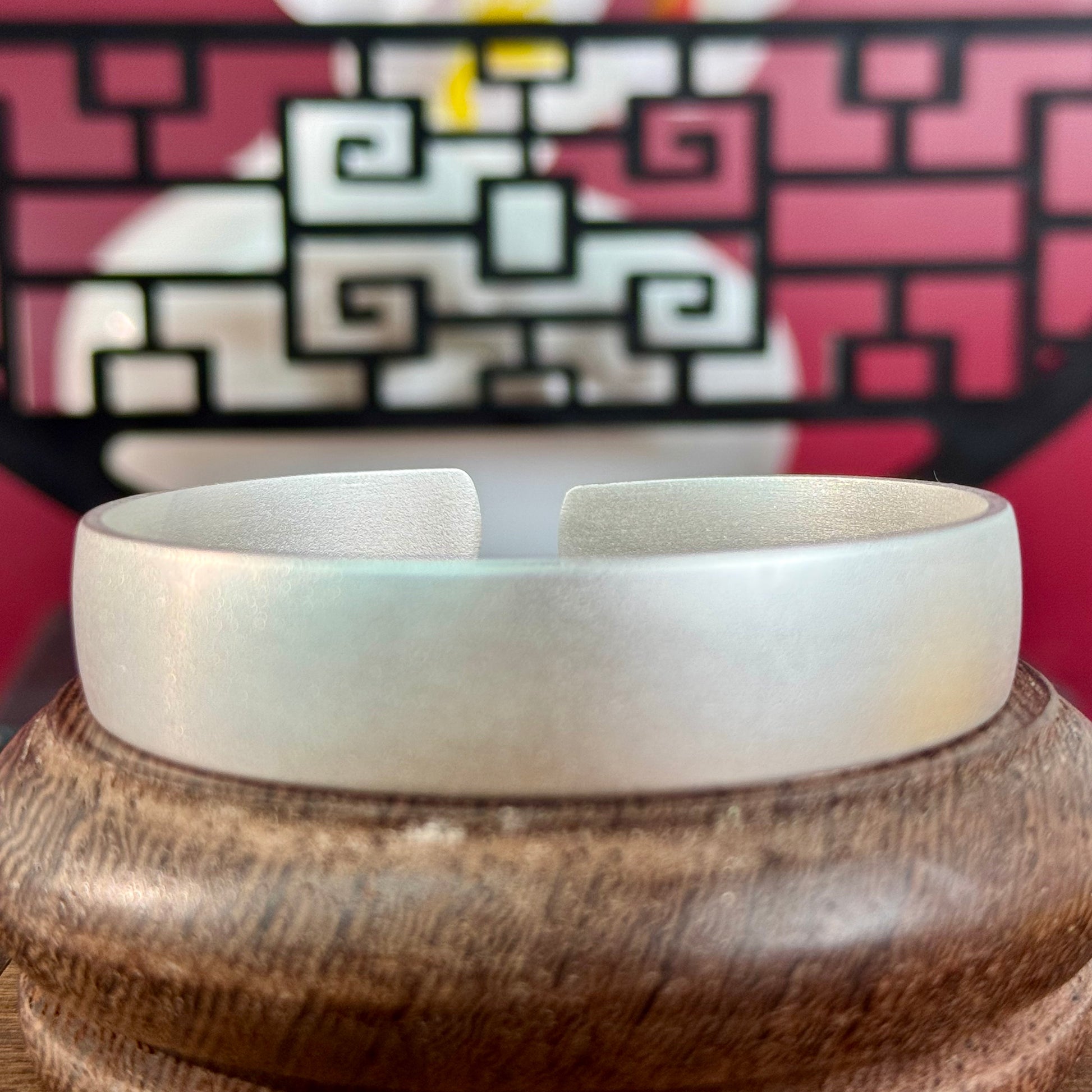 Silver Product Matte Open Bangle – Soft Silver Glow, Gentle Texture on Wrist | POD Customizable