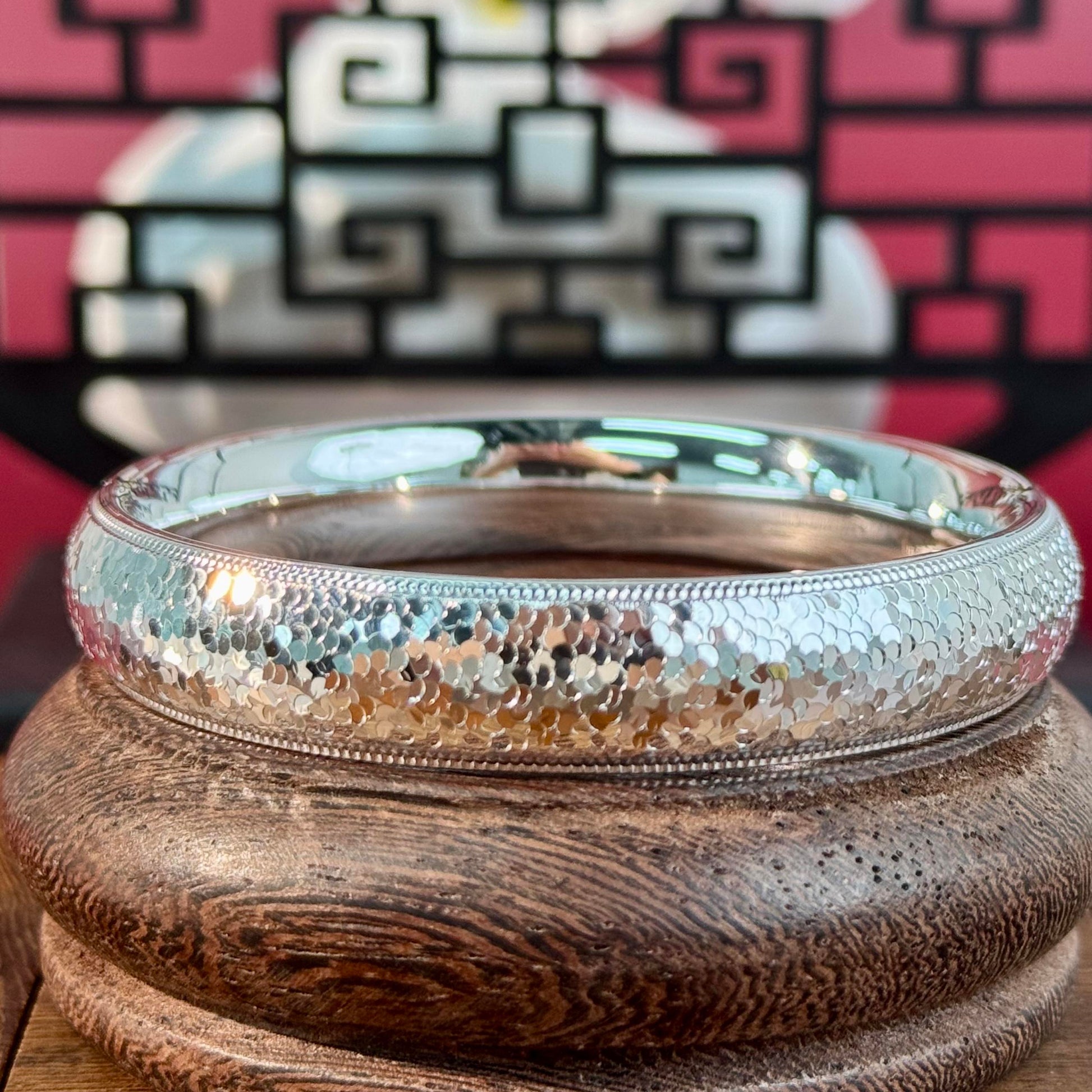 Silver "Scaly Texture & Soft Shine" Wide Bangle – Light Hides in Texture, Premium Vibe on Wrist | POD Customizable