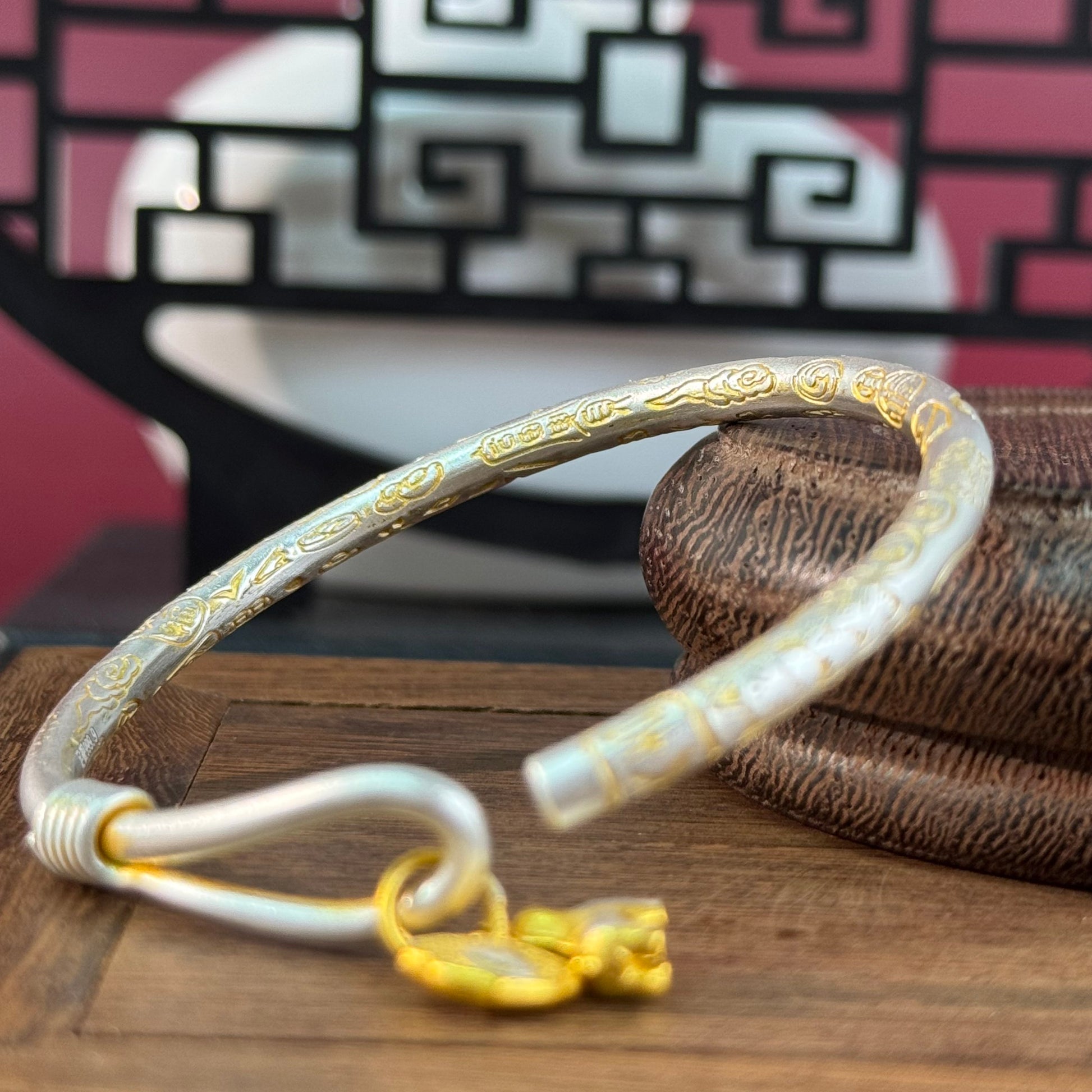 - Solid silver base with gilded patterns: the warm silver and delicate gold create a vintage texture. The adjustable clasp fits different wrist sizes, ensuring flexible, comfortable wear – balancing craft beauty with daily usability.