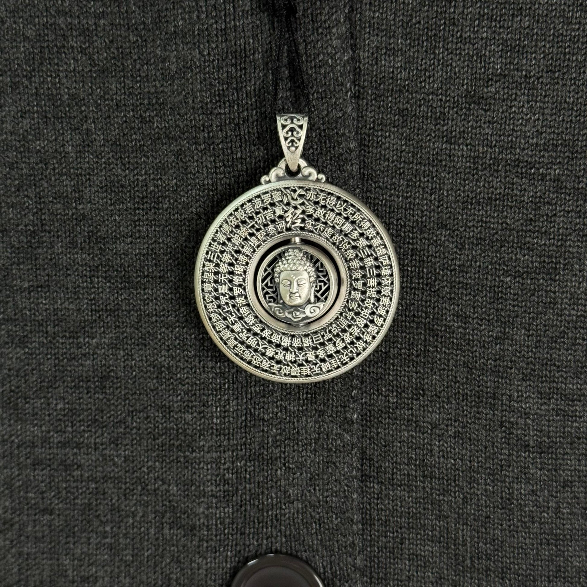 Solid Silver Rotatable Buddha Head & Heart Sutra Pendant – Carry Peaceful Blessings as a Portable Calm Token