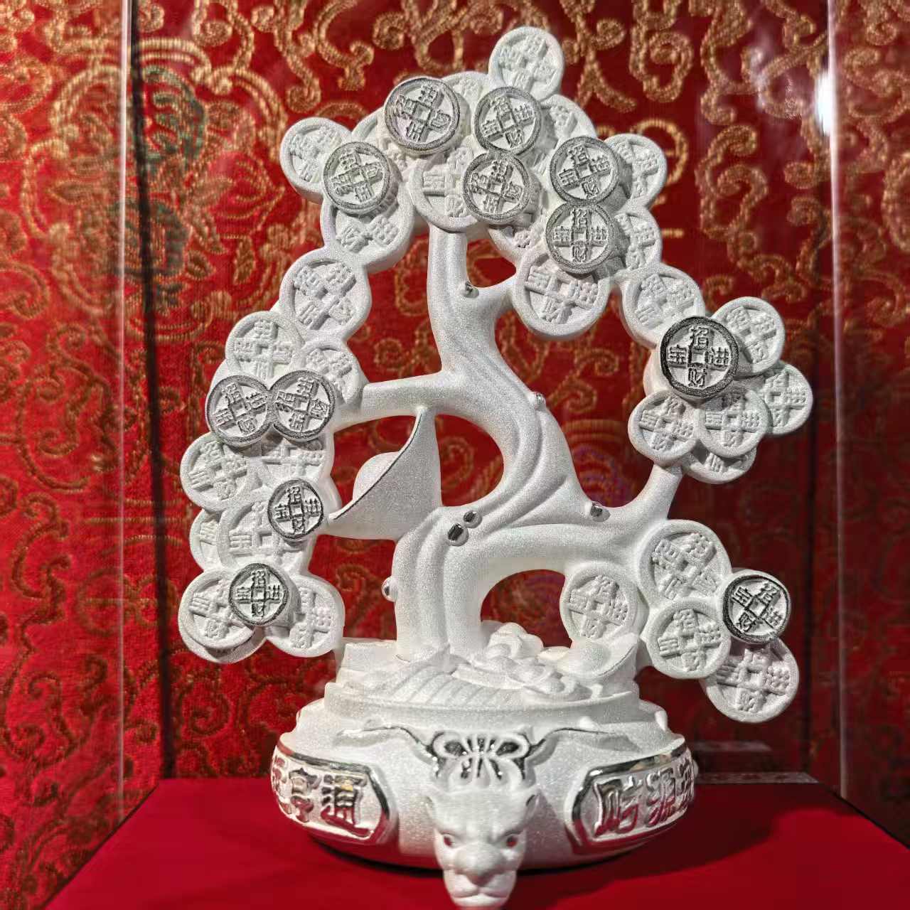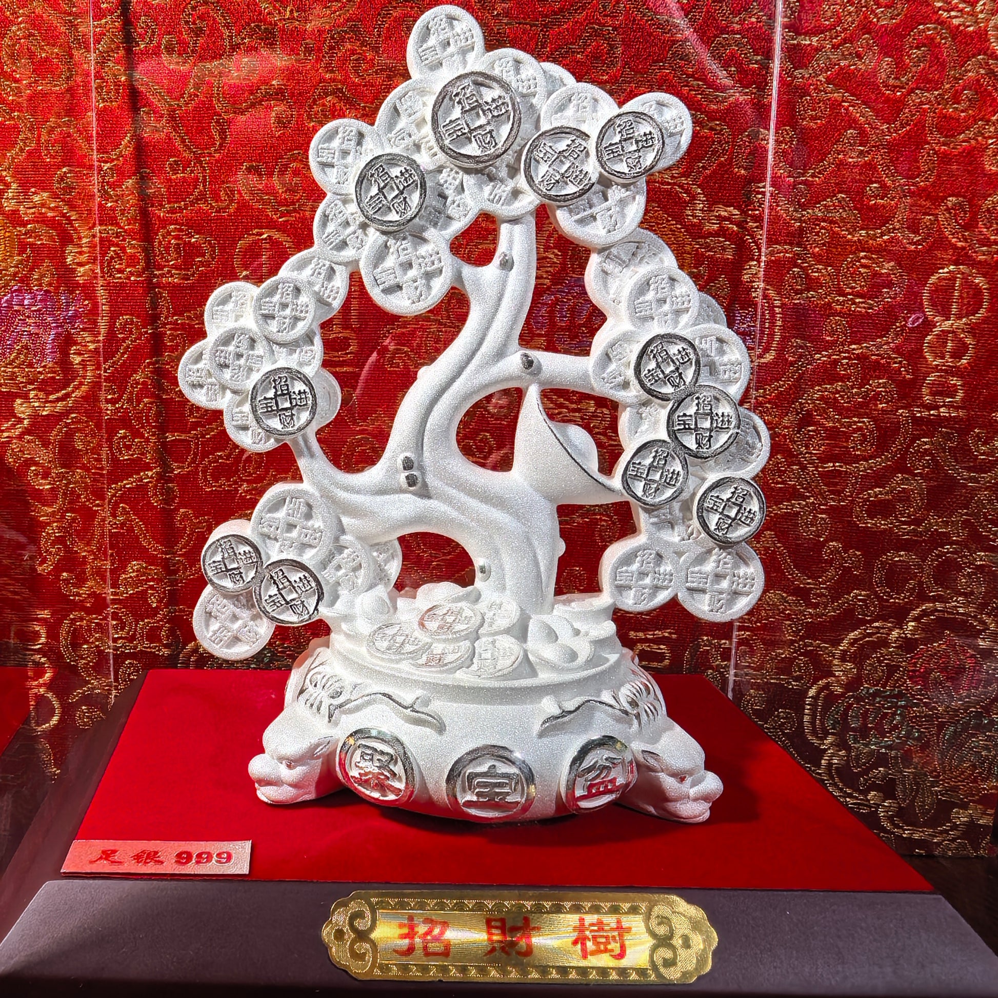 Exquisitely Crafted from Fine Silver, Substantial Texture with Fortune-Attracting SymbolismMade of premium high-purity fine silver, this money tree ornament is crafted through multiple elaborate processes including molding, engraving and polishing. It features clear, three-dimensional textures on the trunk and lush, lifelike branches and leaves, delivering a substantial, solid feel in the hand. Designed in the shape of a "fortune-attracting tree", it carries the traditional auspicious meaning of "abundant wealth and thriving prosperity". Placed at home or in the office, it is not only an exquisite decoration but also a feng shui item that gathers wealth and blessings.